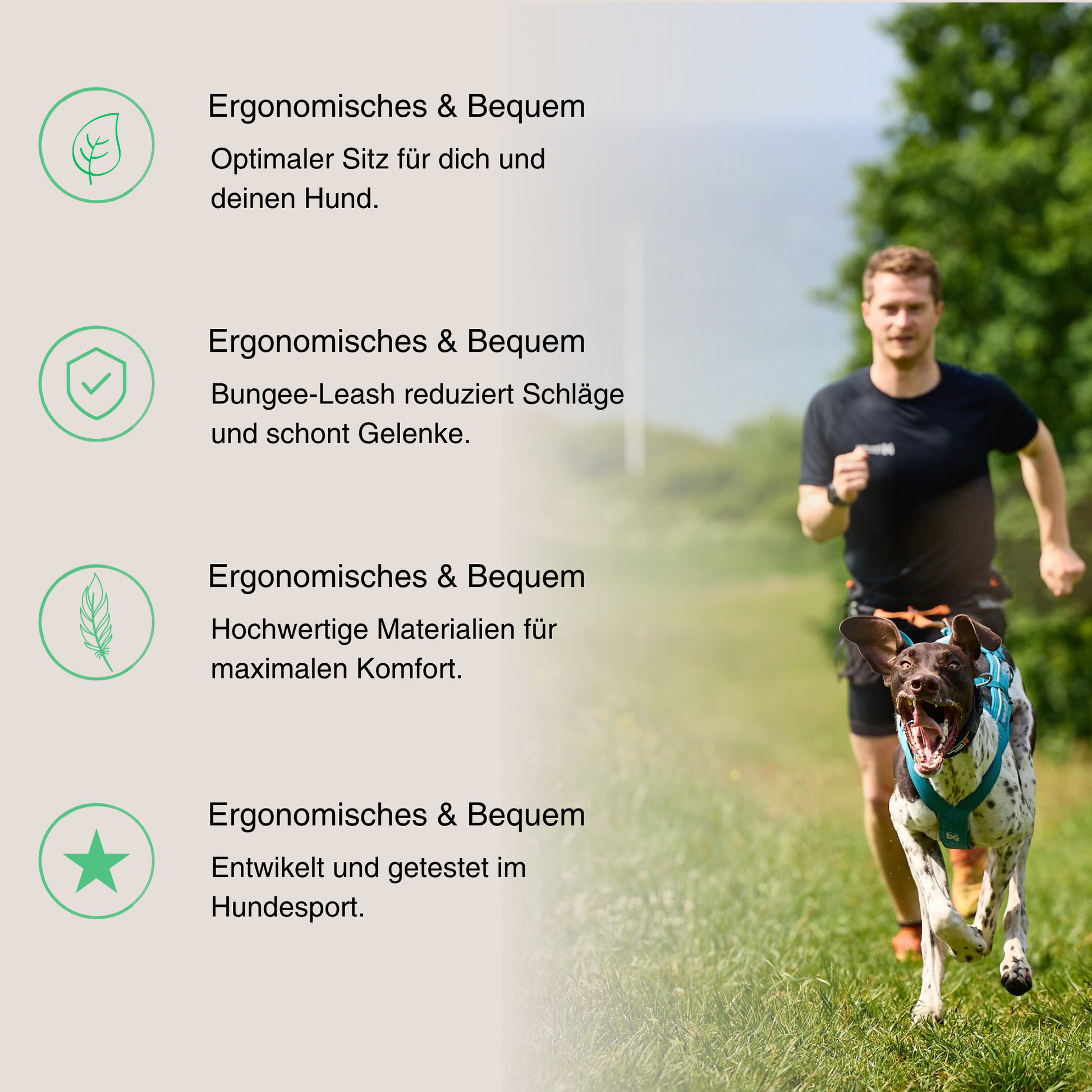 Dieses Set ist ideal für dich, wenn du mit deinem Hund joggen oder in den Canicross-Sport einsteigen möchtest und direkt mit der richtigen Ausrüstung starten willst – ohne Zeit mit dem Zusammenstellen einzelner Produkte zu verlieren.
